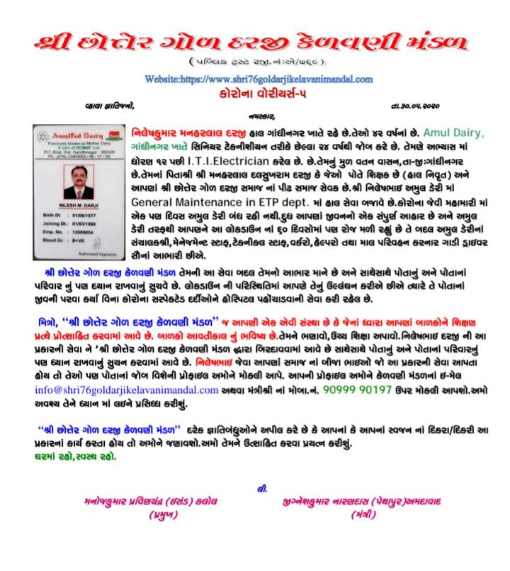 રાહતકીટ માટે દાન આપનાર દાતાઓની યાદી